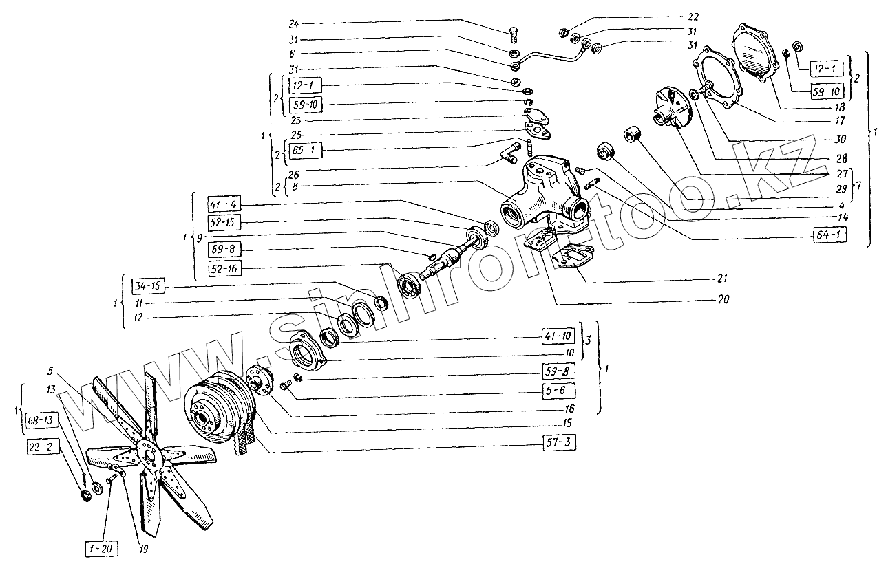 Каталог запасных частей к технике: ХТЗ Т-151К-08. Насос водяной