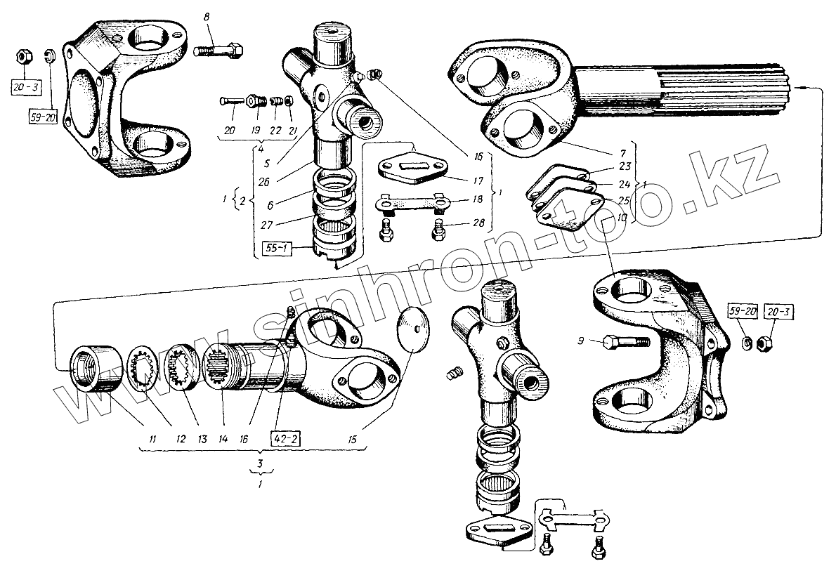 Каталог запасных частей к технике: ХТЗ Т-151К-08. Передача карданная мостов. Кардан передний