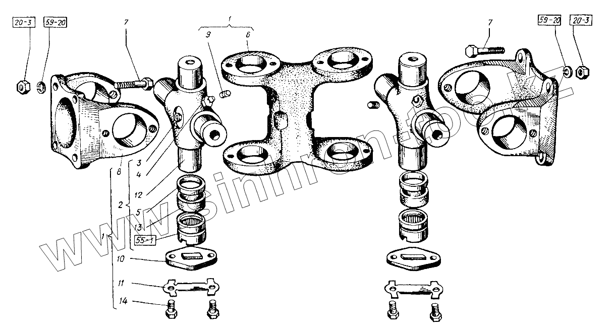Каталог запасных частей к технике: ХТЗ Т-151К-08. Передача карданная мостов. Вилка двойная