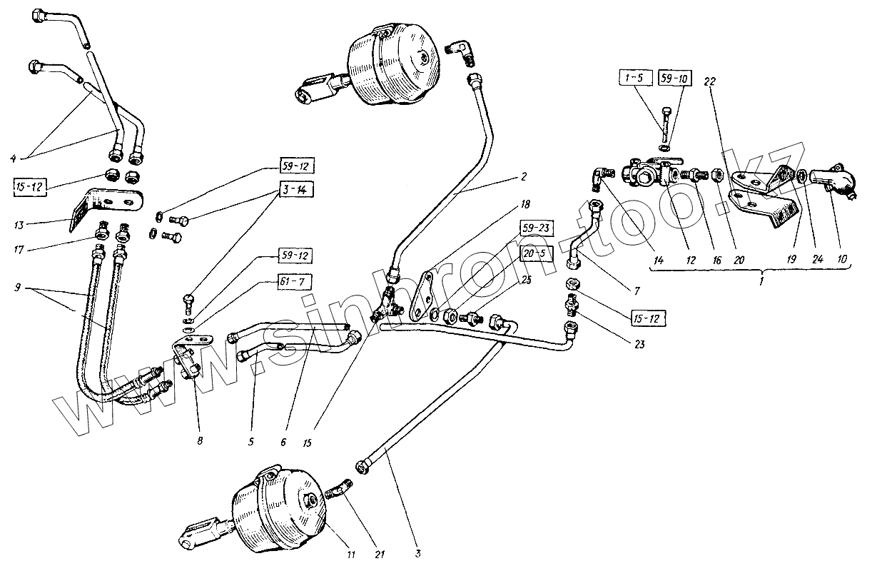 | 9 | 200-3506060-Б1 | Шланг к передним тормозным камерам гибкий в сборе | |