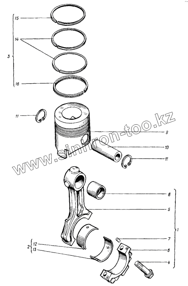 Каталог запасных частей к технике: ХТЗ Т-151К-08. Поршень с шатуном