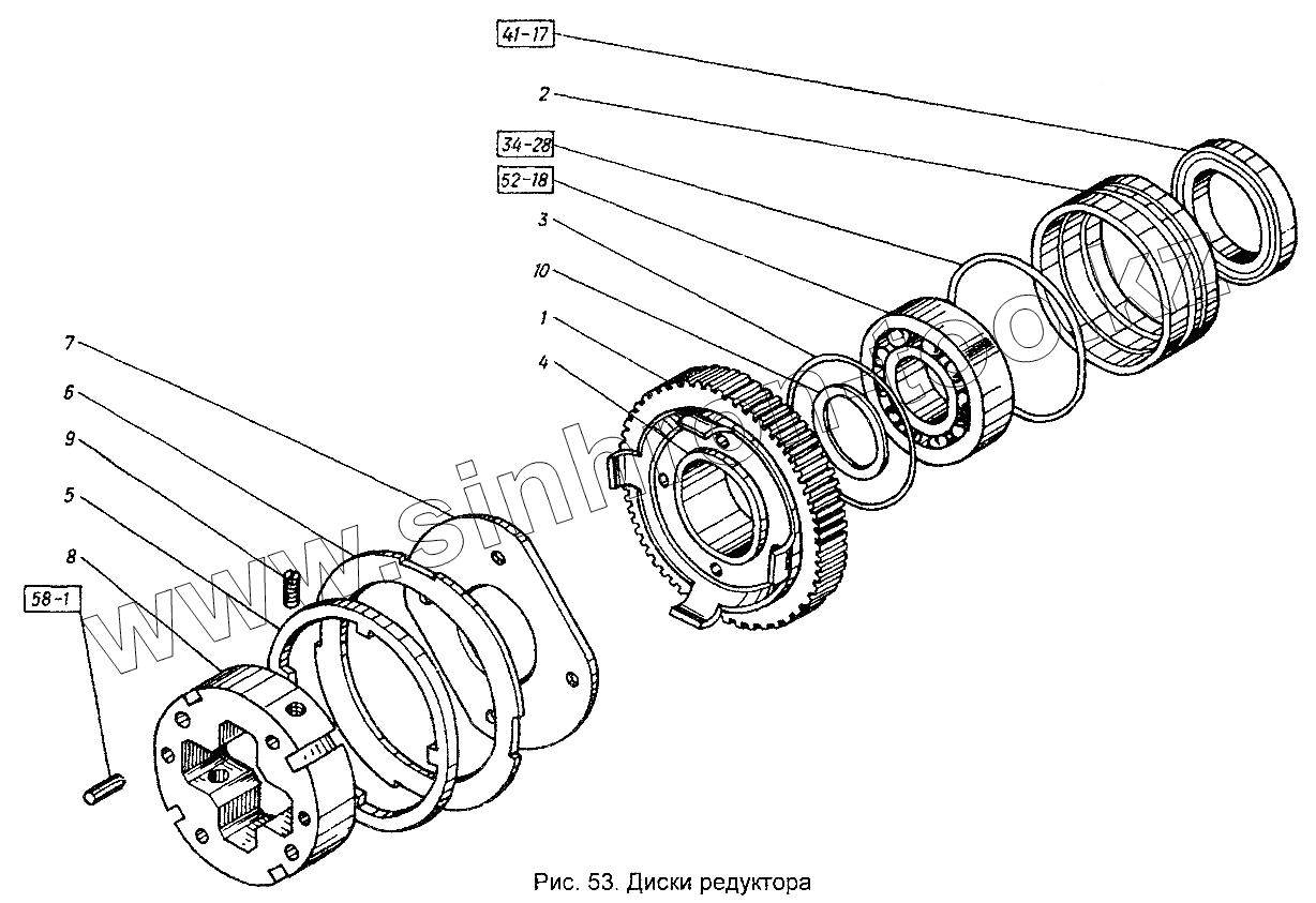 Каталог запасных частей к технике: ХТЗ Т-151К-08. Пусковой двигатель. Диски редуктора