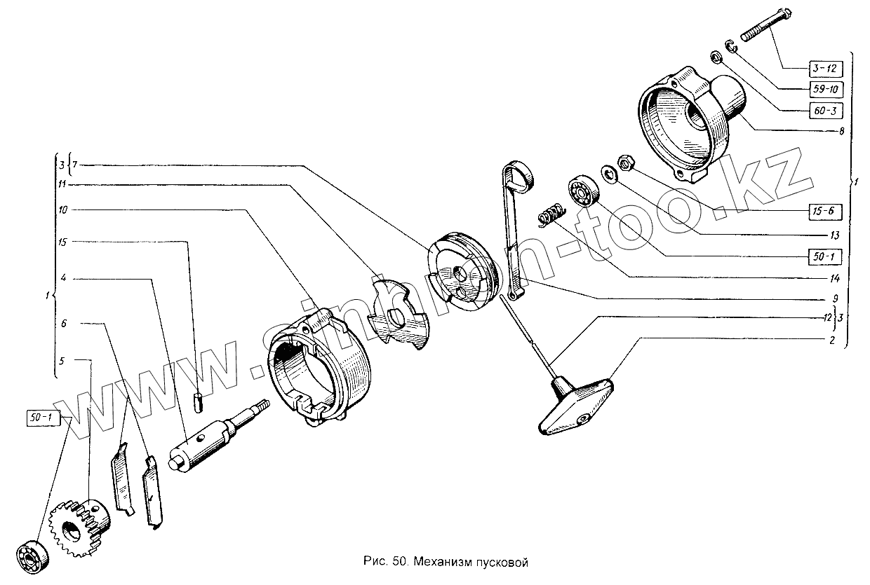 Каталог запасных частей к технике: ХТЗ Т-151К-08. Пусковой двигатель. Механизм пусковой