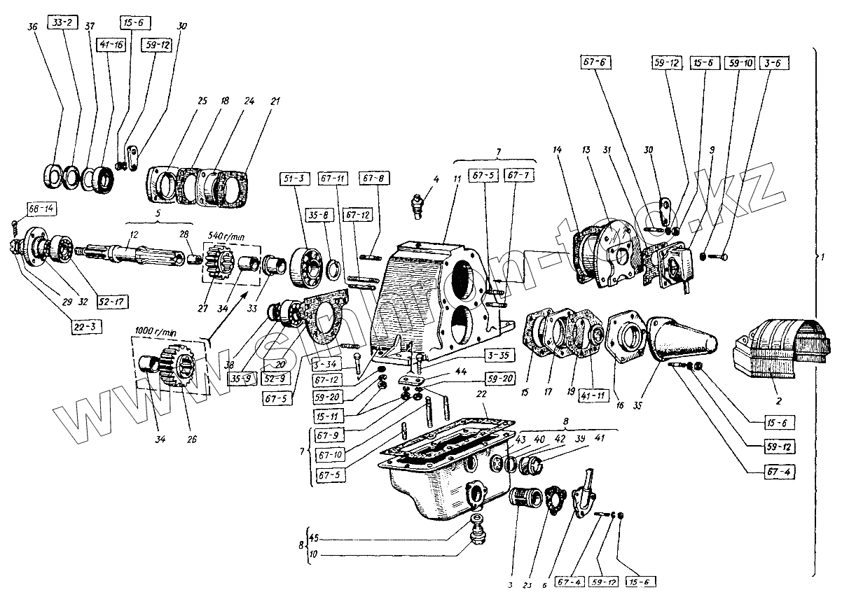 Каталог запасных частей к технике: ХТЗ Т-151К-08. Редуктор ВОМ