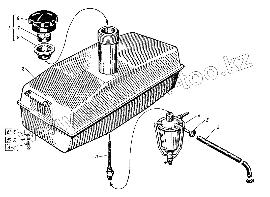 Каталог запасных частей к технике: ХТЗ Т-151К-08. Система подогрева двигателя. Бачок топливный