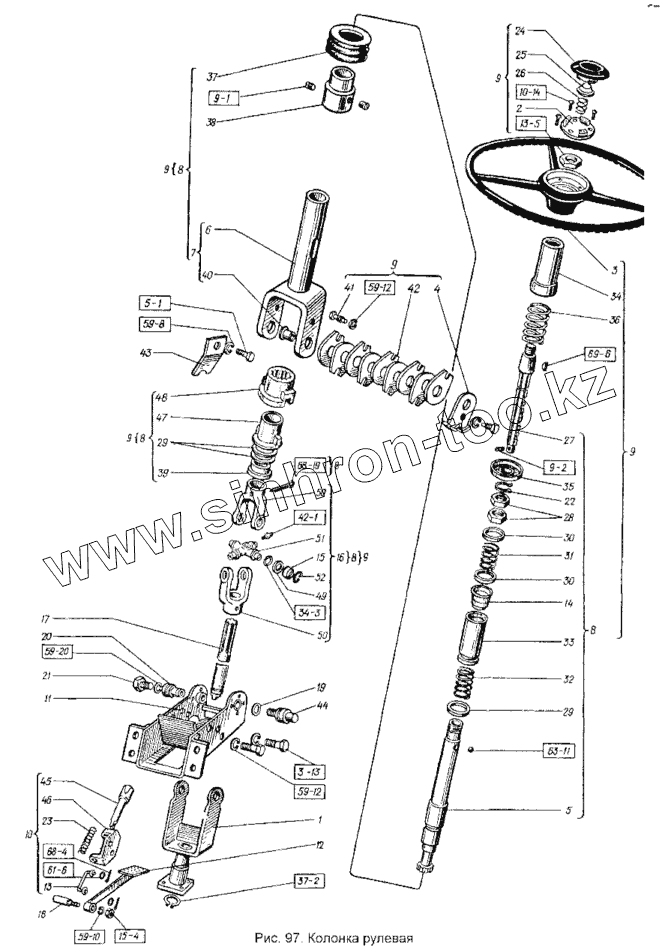 Каталог запасных частей к технике: ХТЗ Т-151К-08. Управление рулевое. Колонка рулевая