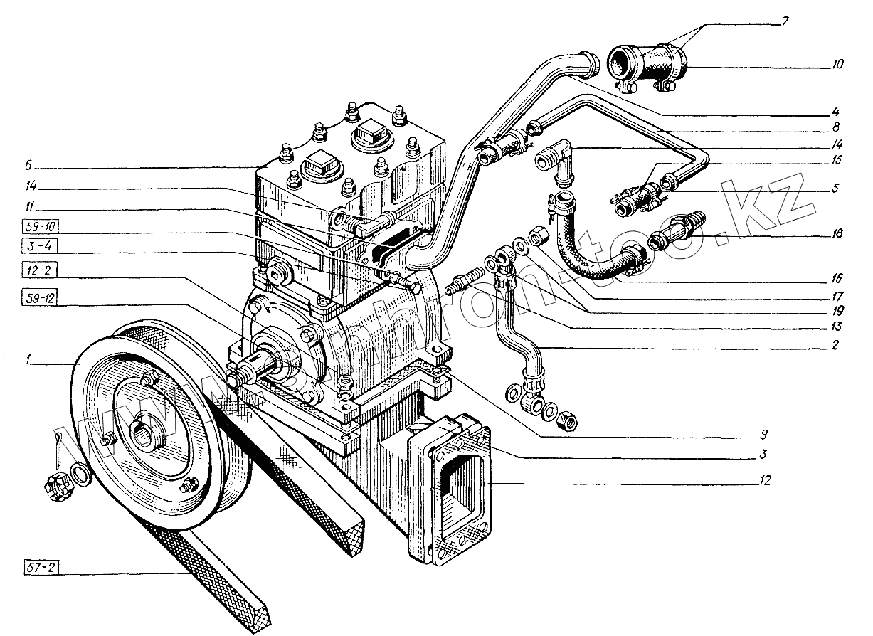 Каталог запасных частей к технике: ХТЗ Т-151К-08. Установка компрессора