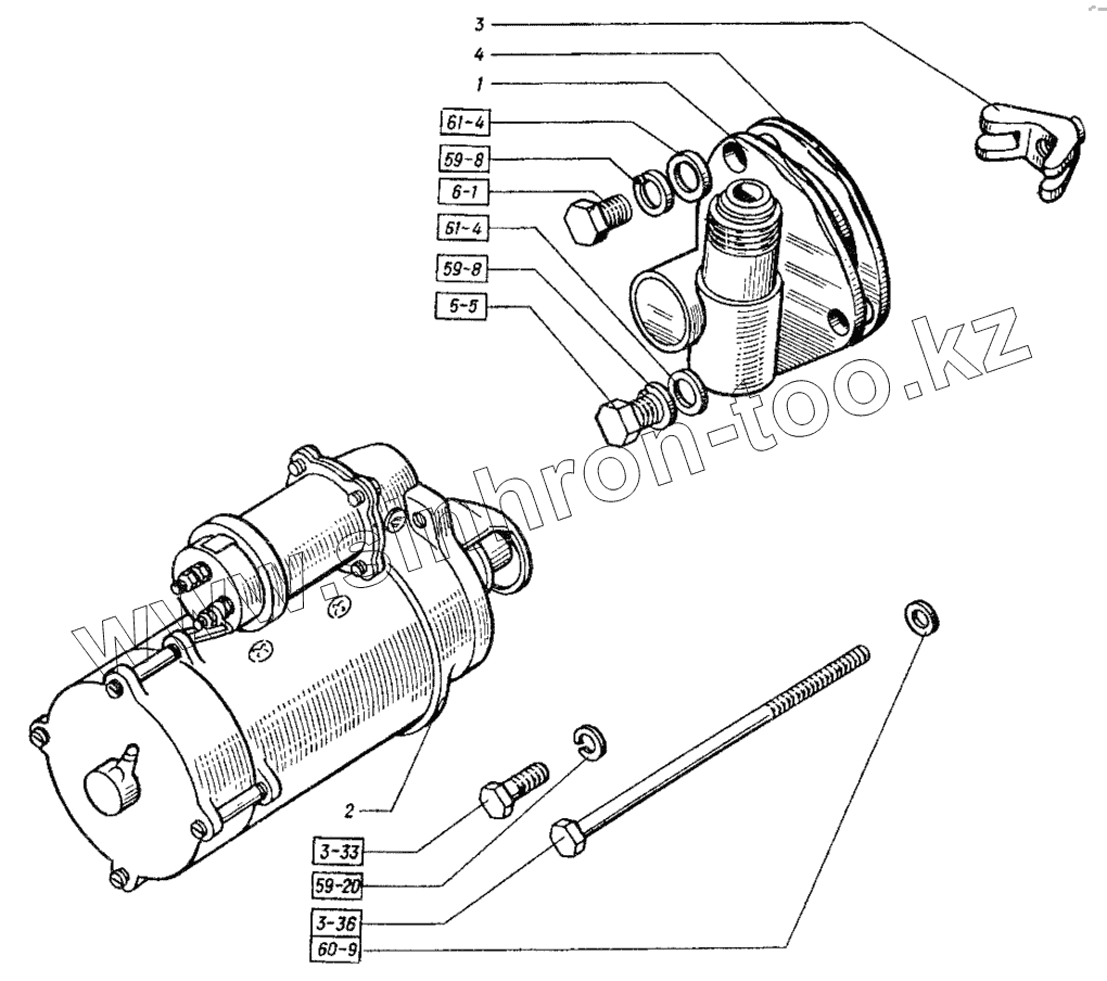 Каталог запасных частей к технике: ХТЗ Т-151К-08. Установка привода тахоспидометра. Установка стартера