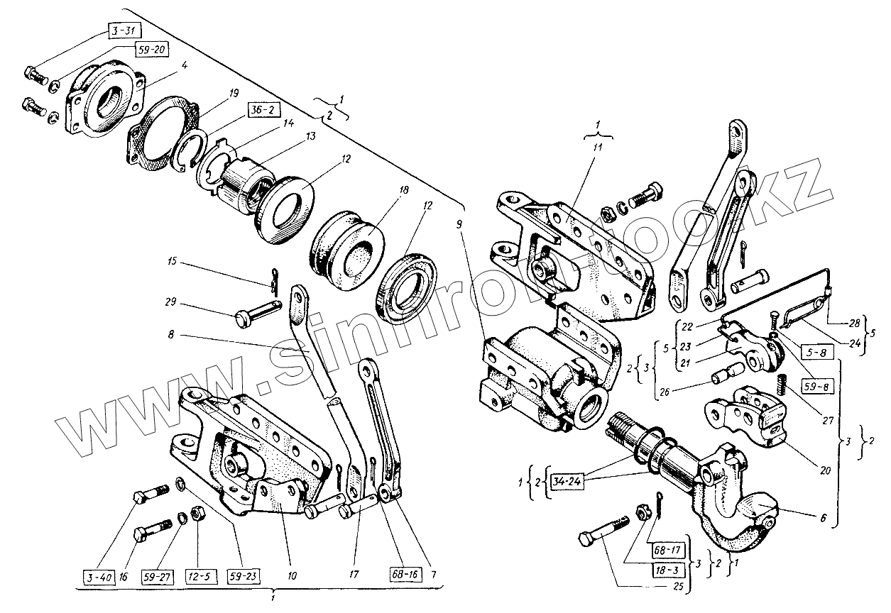 Каталог запасных частей к технике: ХТЗ Т-151К-08. Устройство тягово-сцепное