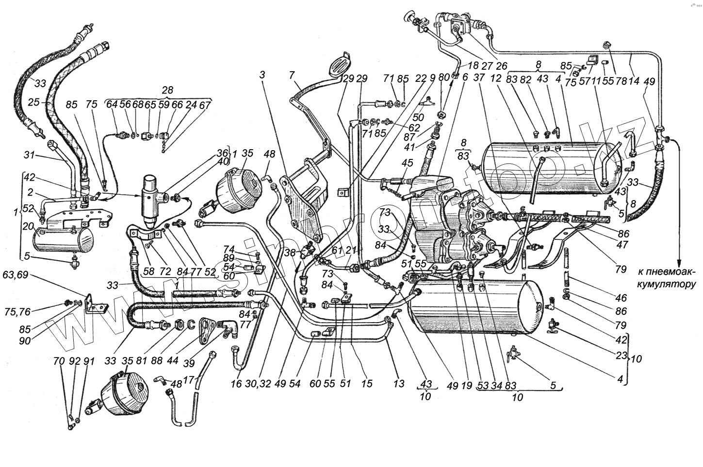 Каталог запасных частей к технике: ХТЗ Т-151К. Пневмосистема