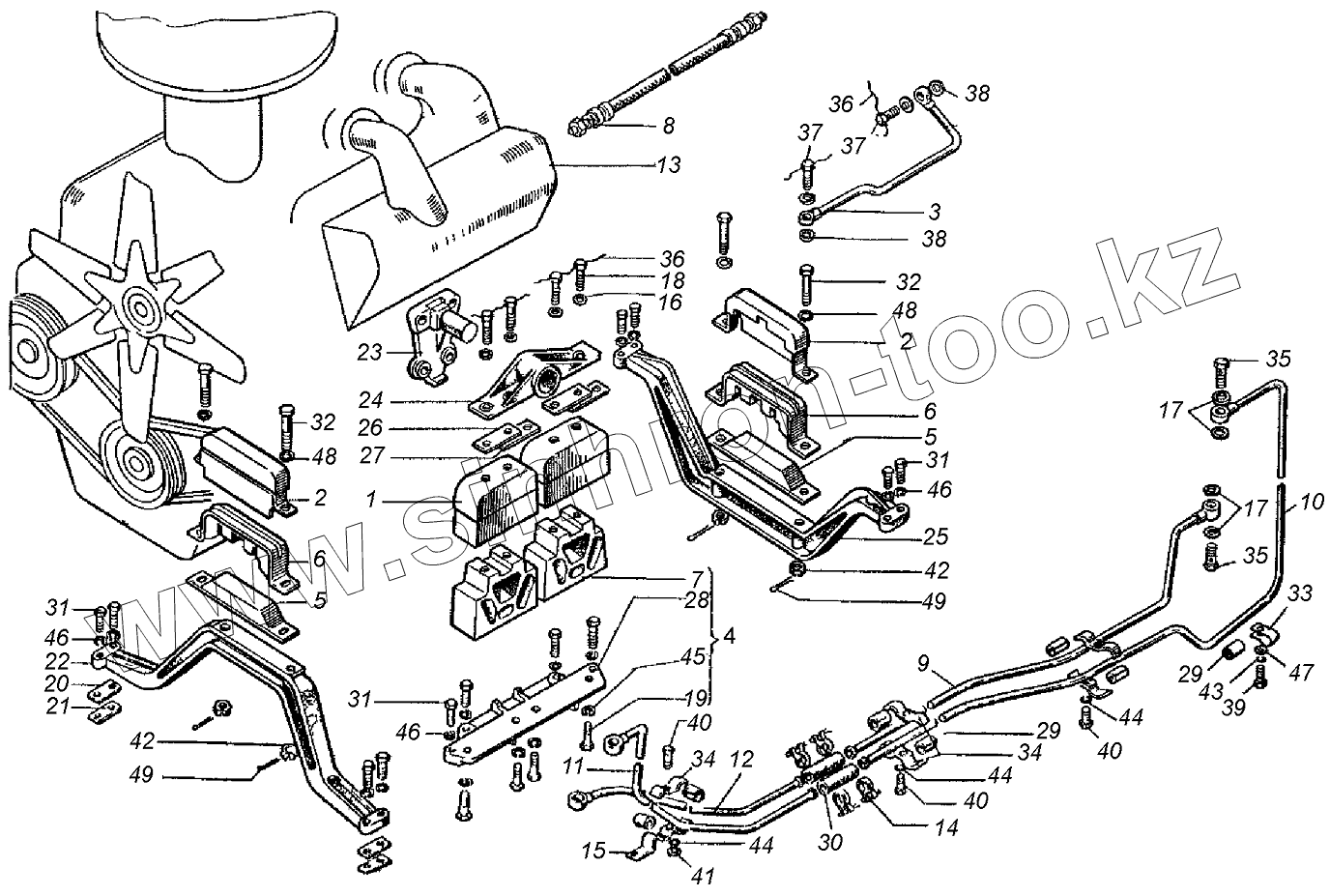 Каталог запасных частей к технике: ХТЗ Т-151К. Установка двигателя