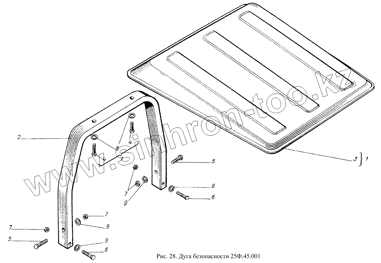 Каталог запасных частей к технике: ХТЗ Т-25Ф. Дуга безопасности 25Ф.45.001
