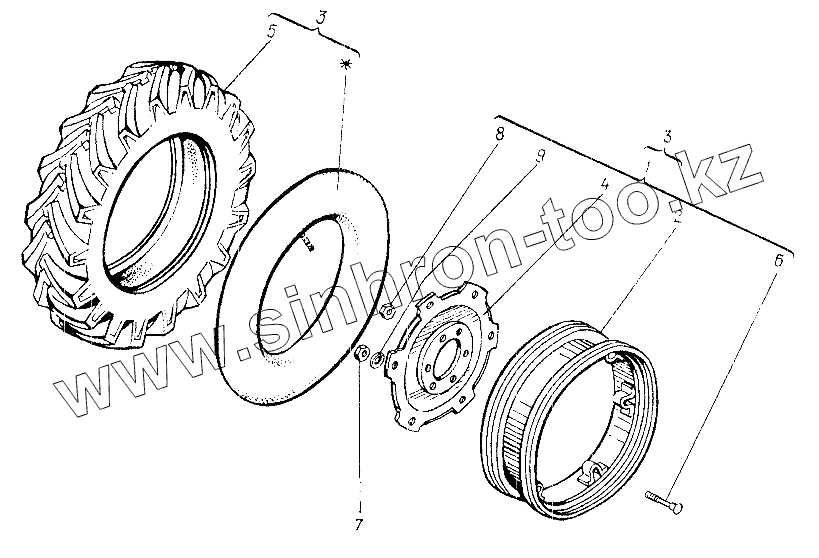 Каталог запасных частей к технике: ХТЗ Т-25Ф. Колесо заднее 25Ф.34.001