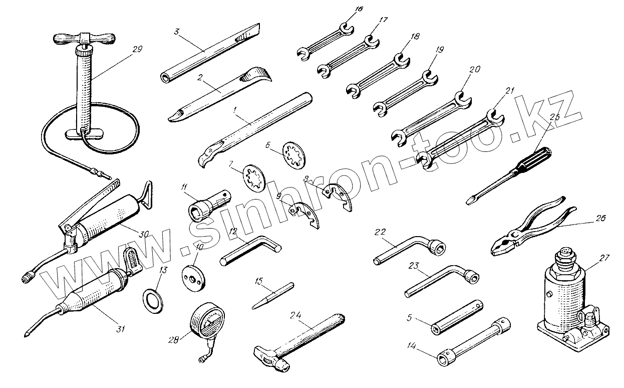 Каталог запасных частей к технике: ХТЗ Т-25Ф. Комплект ЗИП одиночный 25Ф.49.001
