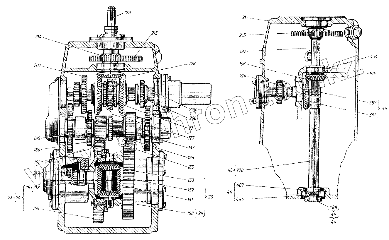 Каталог запасных частей к технике: ХТЗ Т-25Ф. Коробка передач (установка шестерен) 25Ф.37.010