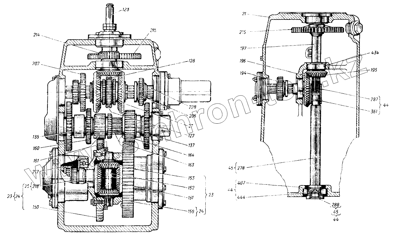 Каталог запасных частей к технике: ХТЗ Т-25Ф. Коробка передач (установка шестерен) 25ФМ.37.010