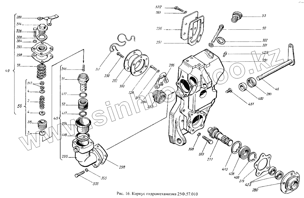 Каталог запасных частей к технике: ХТЗ Т-25Ф. Корпус гидромеханизма 25Ф.57.010