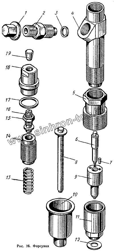 Каталог запасных частей к технике: ХЗТСШ Т-16М. Форсунка