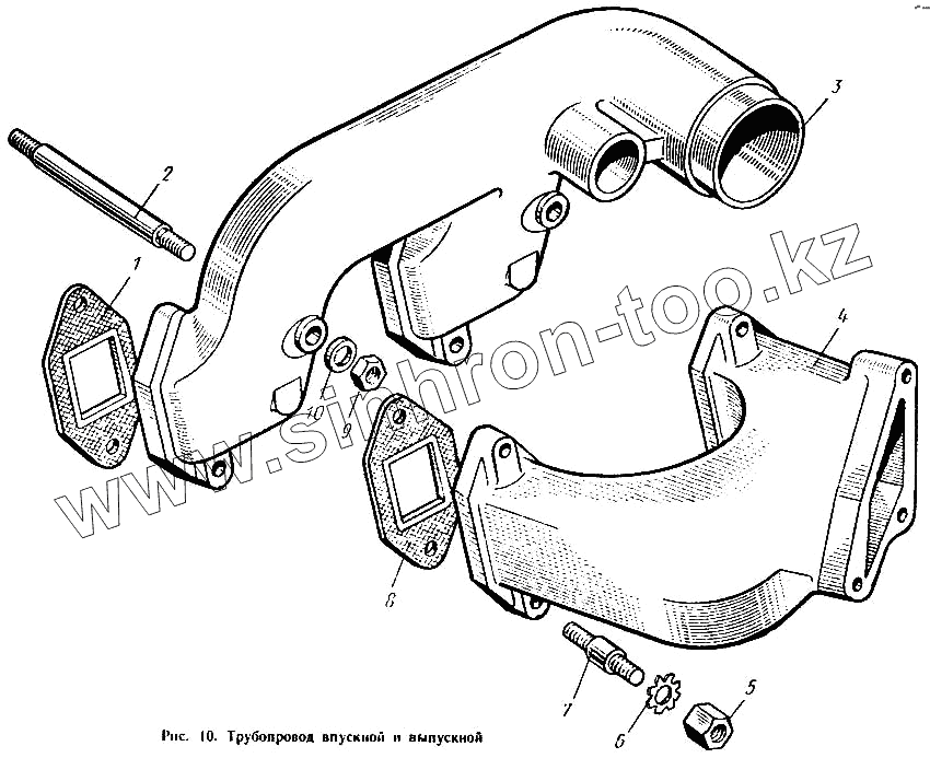 Каталог запасных частей к технике: ХЗТСШ Т-16М. Трубопровод впускной и выпускной