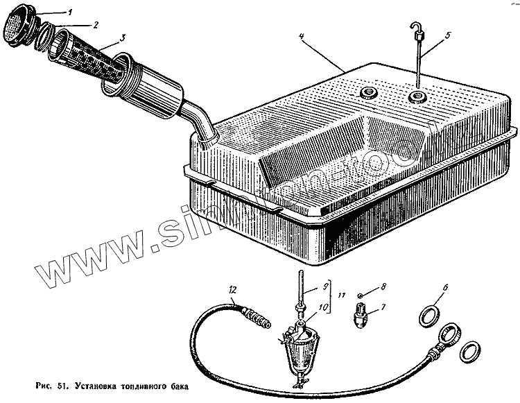 Каталог запасных частей к технике: ХЗТСШ Т-16М. Установка топливного бака
