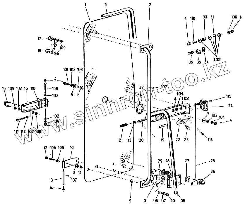 Каталог запасных частей к технике: Кировец-Ландтехник Е-281 "MARAL-125". Дверь кабины