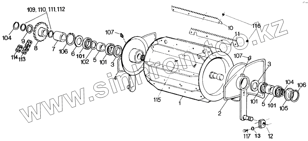 Каталог запасных частей к технике: Кировец-Ландтехник Е-281 "MARAL-125". Измельчающий агрегат: верхний питающий валец