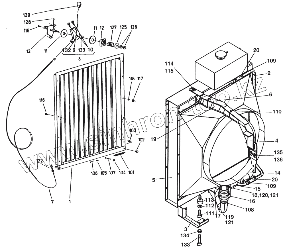 Каталог запасных частей к технике: Кировец-Ландтехник Е-281 "MARAL-125". Система охлаждения двигателя