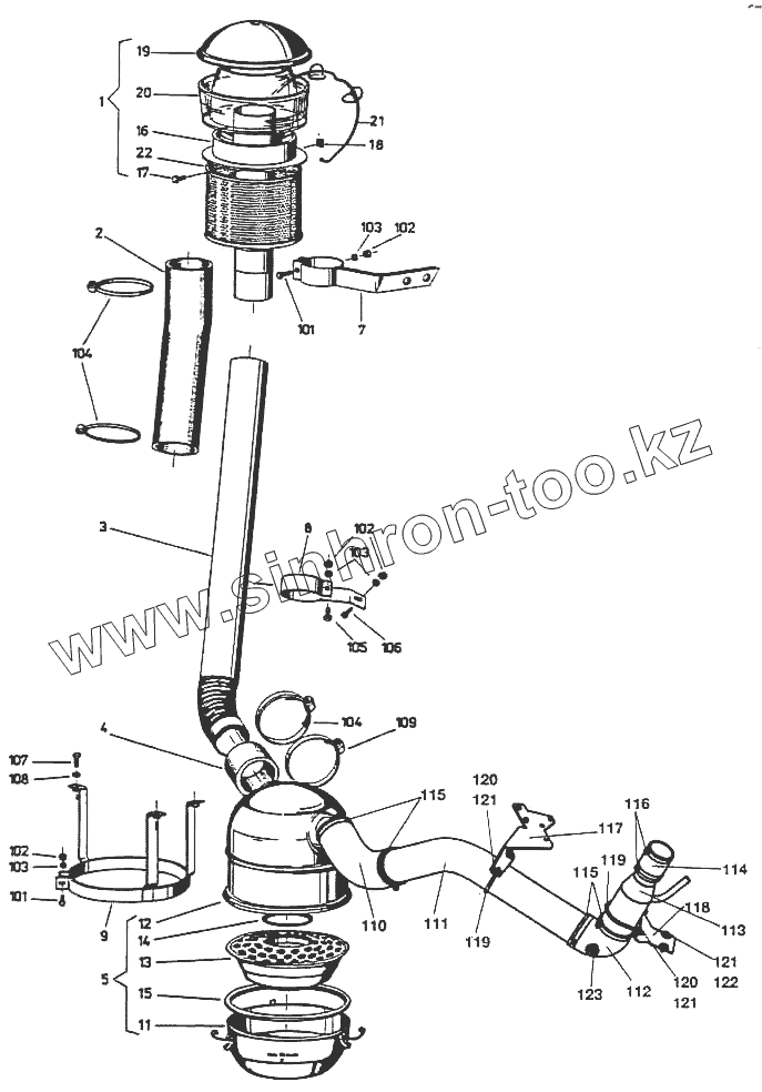 Каталог запасных частей к технике: Кировец-Ландтехник Е-281 "MARAL-125". Система подвода воздуха сгорания