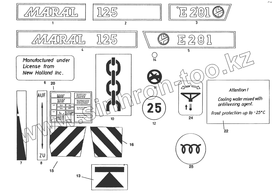 Каталог запасных частей к технике: Кировец-Ландтехник Е-281 "MARAL-125". Таблички и наклейки