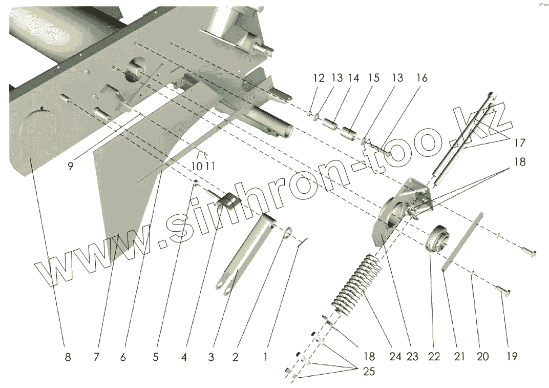 Каталог запасных частей к технике: Клевер ППР-120 "Pelikan". Рама (вид слева)