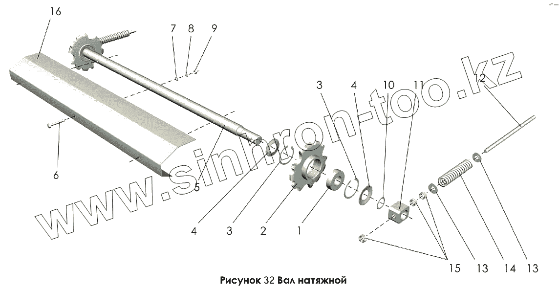 Каталог запасных частей к технике: Клевер ППР-120 "Pelikan". Вал натяжной