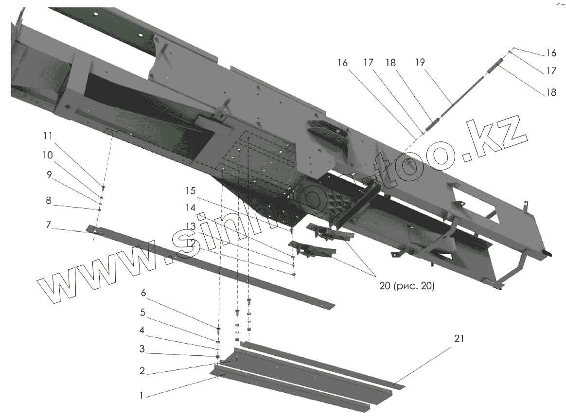 Каталог запасных частей к технике: Клевер ППТ-041 "Tukan". Камера прессующая (вид снизу)