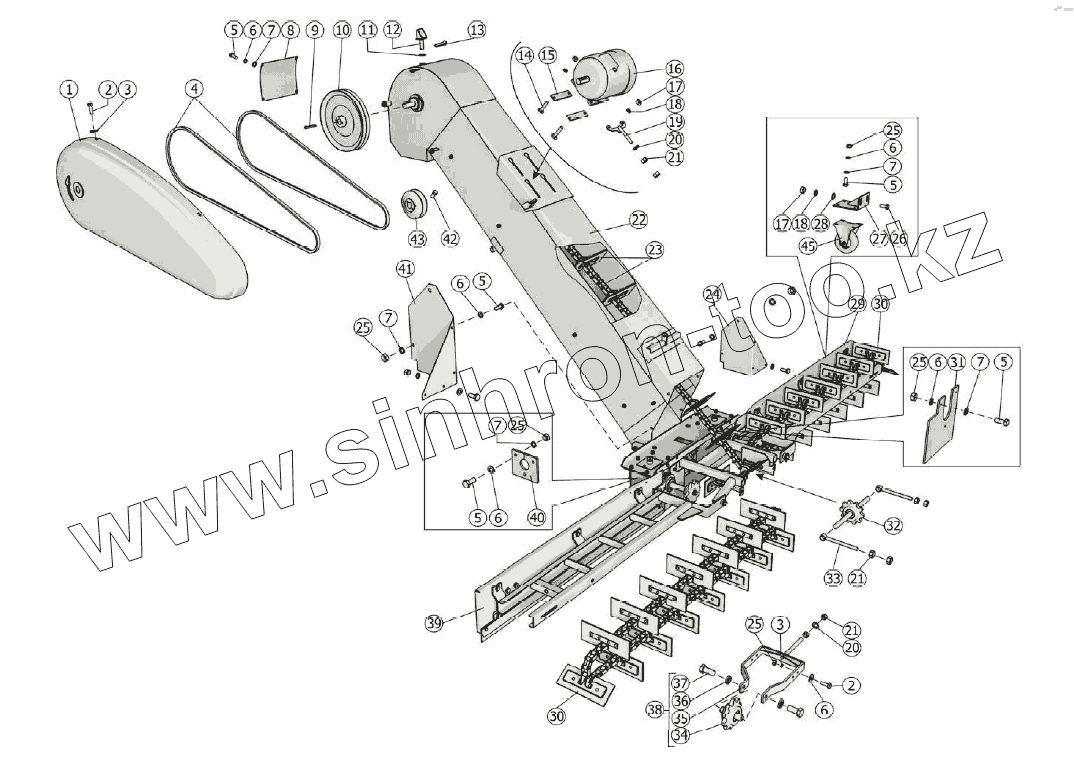 Каталог запасных частей к технике: Клевер ПСМ-25М-01. Транспортер загрузочный МЗС-90.03.000