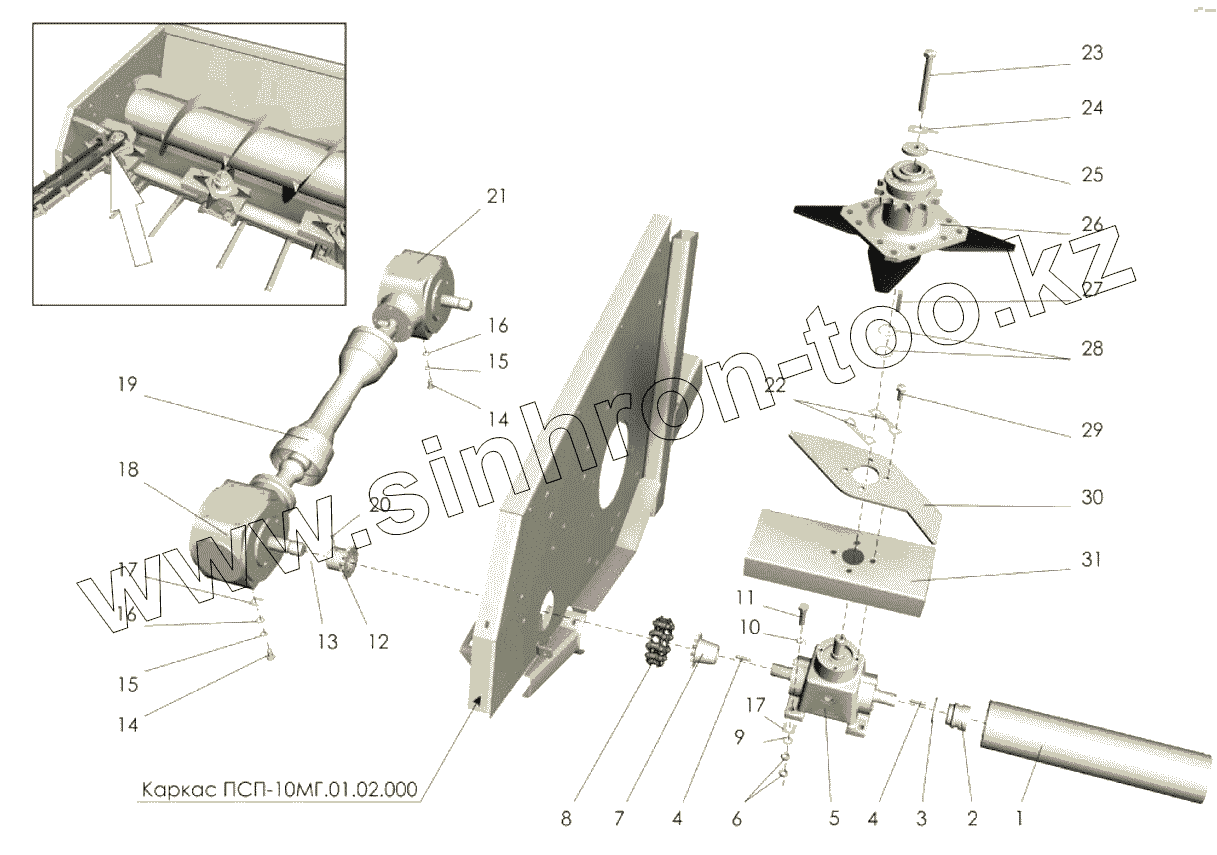 Каталог запасных частей к технике: Клевер ПСП-10МГ "Falcon". Корпус жатки (привод)