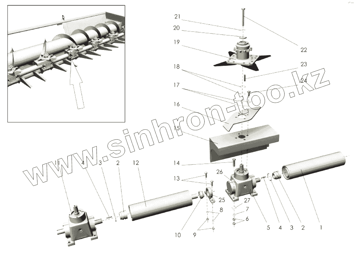 Каталог запасных частей к технике: Клевер ПСП-10МГ "Falcon". Корпус жатки (привод)