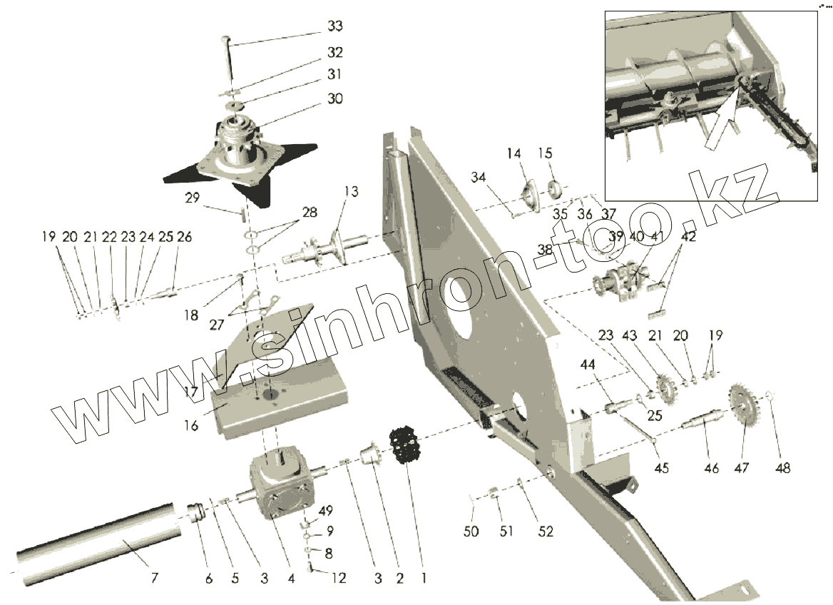 Каталог запасных частей к технике: Клевер ПСП-10МУ "Falcon". Корпус жатки (привод)