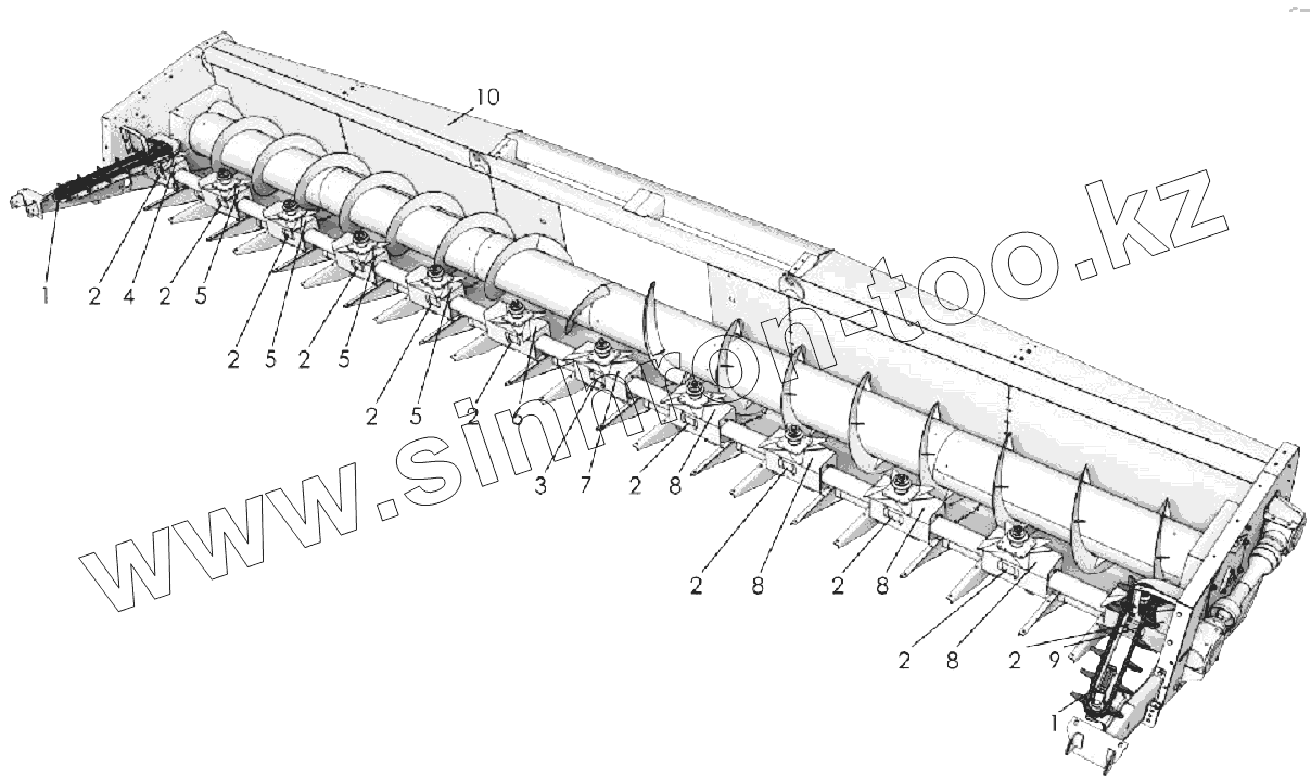Каталог запасных частей к технике: Клевер ПСП-1210 "Falcon". Корпус жатки (общий вид)