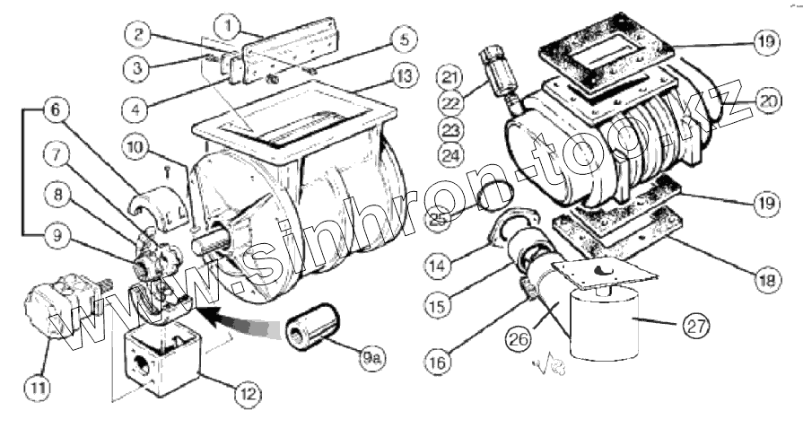 Каталог запасных частей к технике: Клевер ПЗВ-70. Сборка шлюзовой камеры и нагнетателя