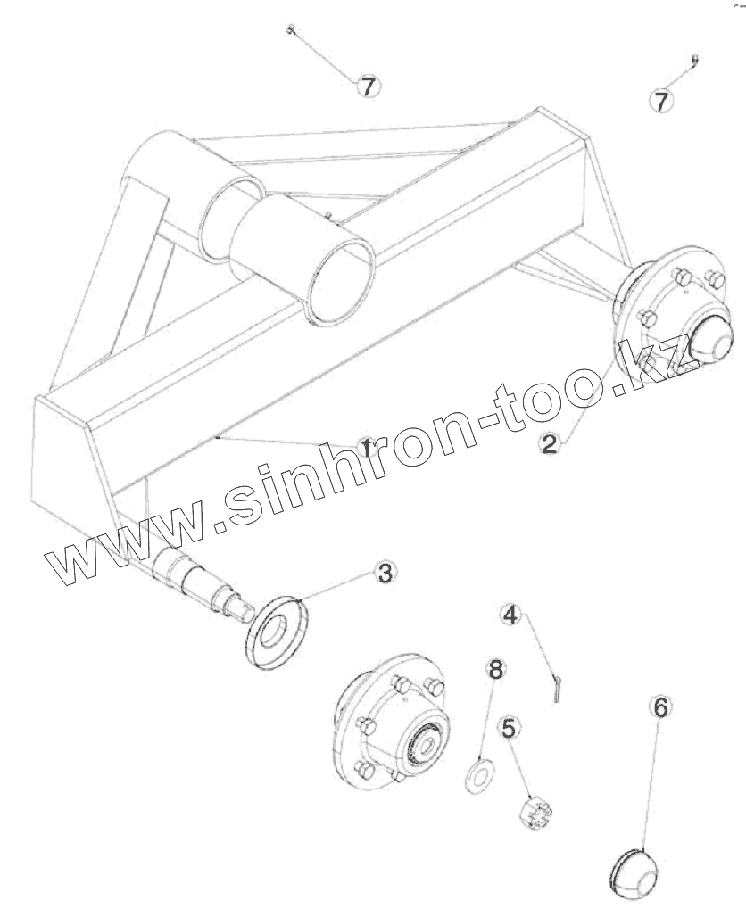Каталог запасных частей к технике: Клевер ТПР-8. Ось тандема B2400-14