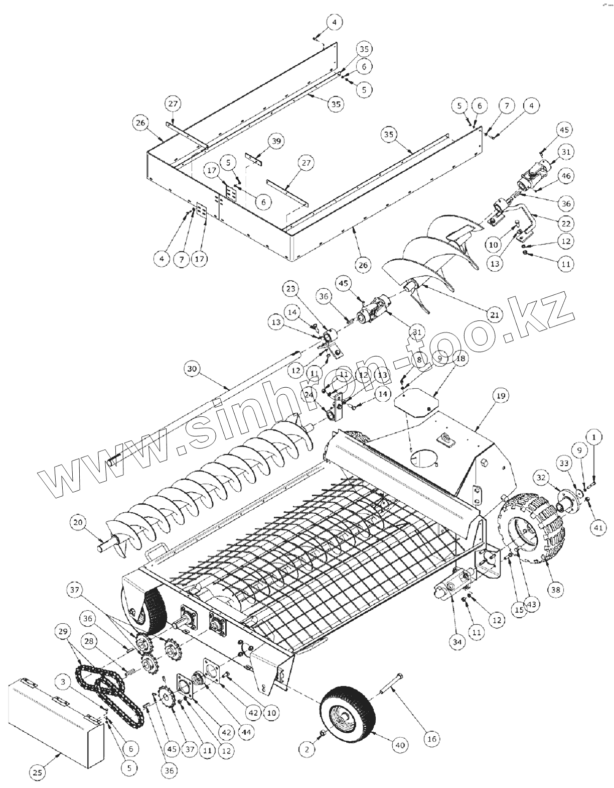Каталог запасных частей к технике: Клевер ТШВ-400-23. Большой шнековый лоток бункера