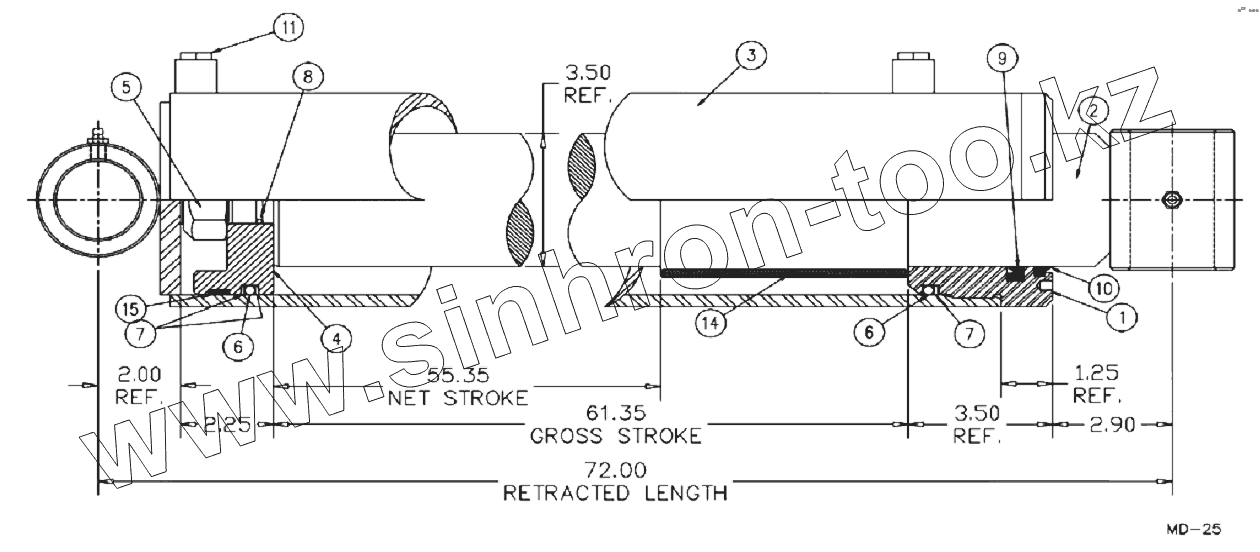 Каталог запасных частей к технике: Клевер ТШВ-400-23. Цилиндр 5.00 x 55.35