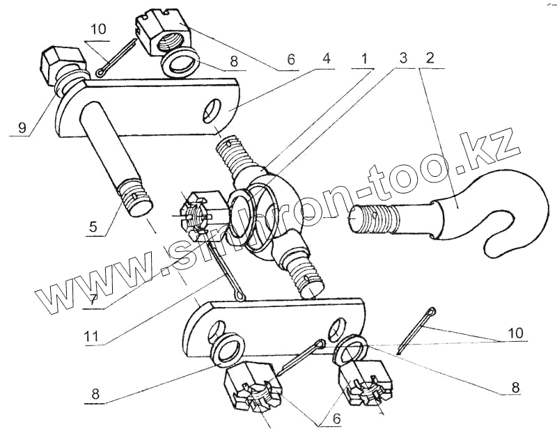 Каталог запасных частей к технике: Красная Звезда ПС-0,5. Крюк с траверсой ПС 01.050