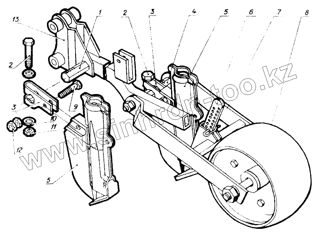 Каталог запасных частей к технике: Красная Звезда СОН-4,2. Приспособление с наральниковыми сошниками СОУ04.070