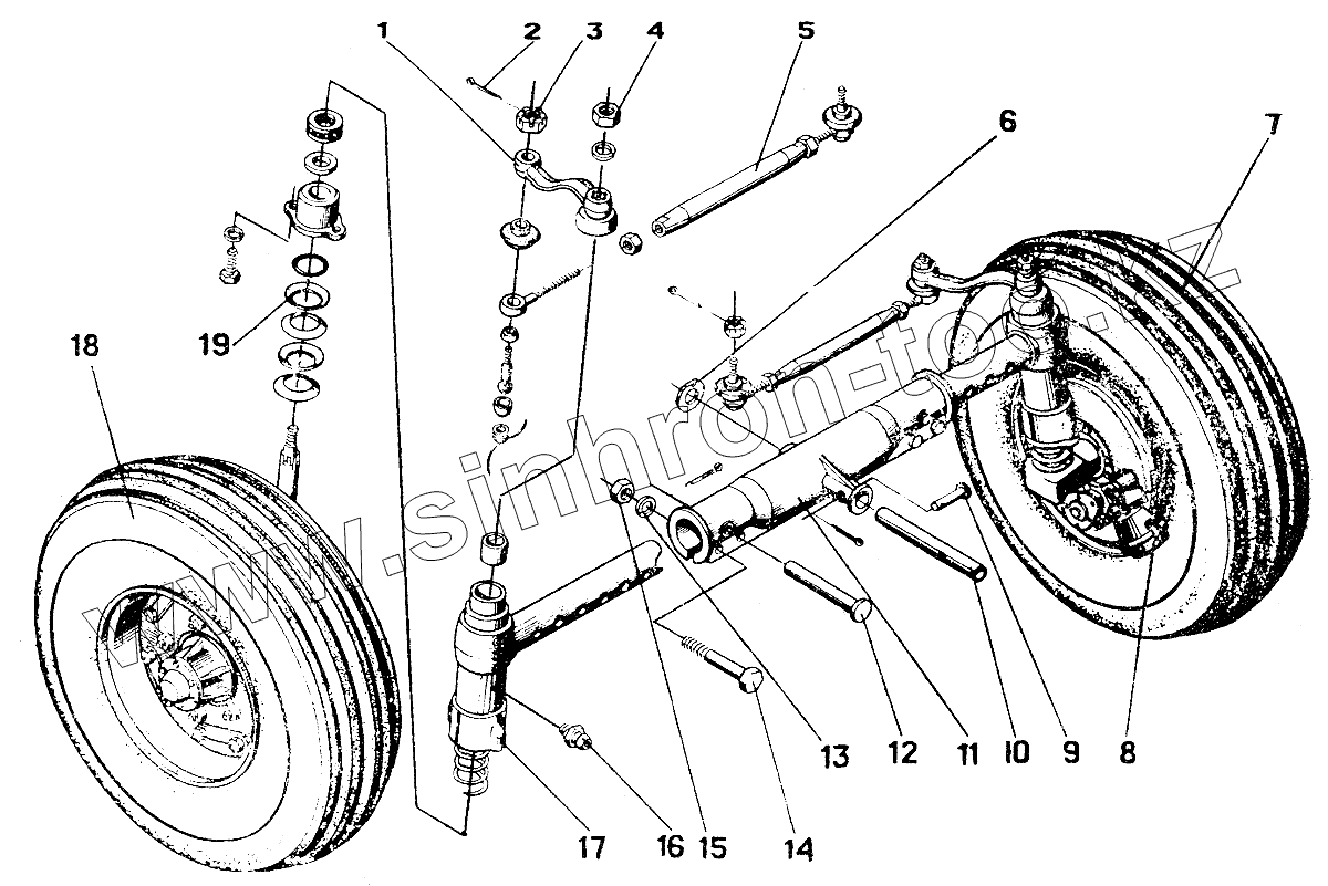 Каталог запасных частей к технике: Красная Звезда СПС-4,2А. Передняя ось с колесами СПТ19000