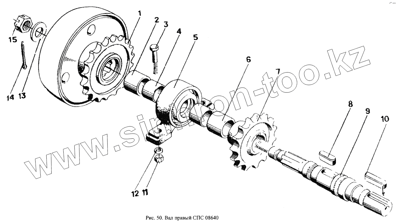 Каталог запасных частей к технике: Красная Звезда СПС-4,2А. Вал правый СПС08640