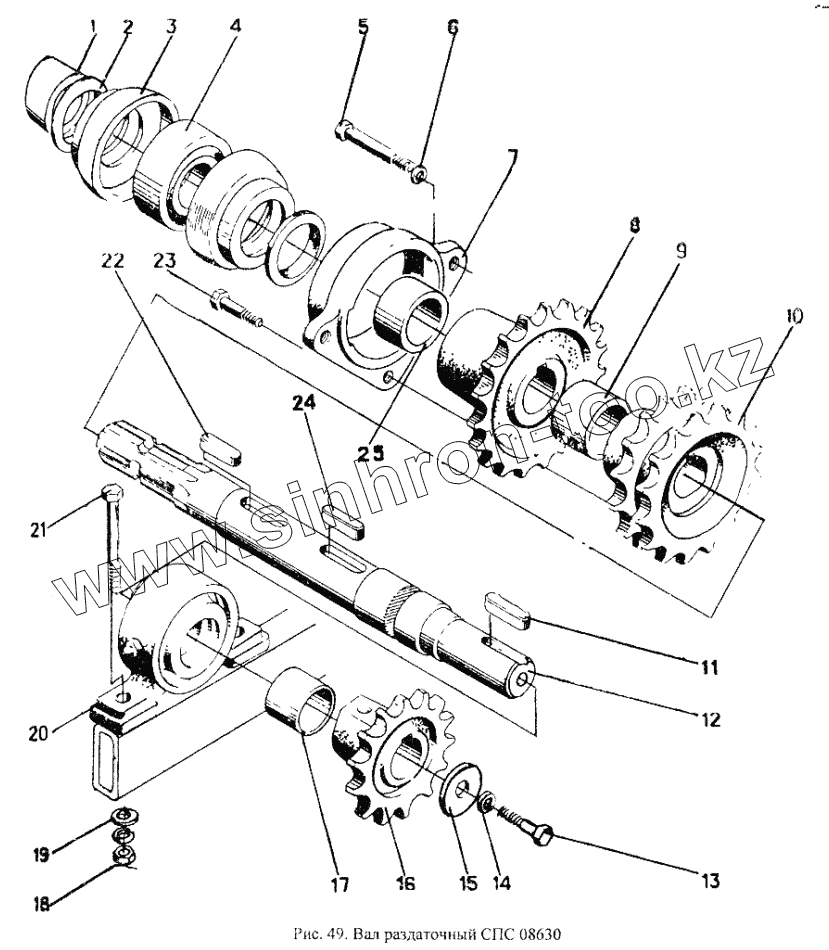 Каталог запасных частей к технике: Красная Звезда СПС-4,2А. Вал раздаточный СПС08630