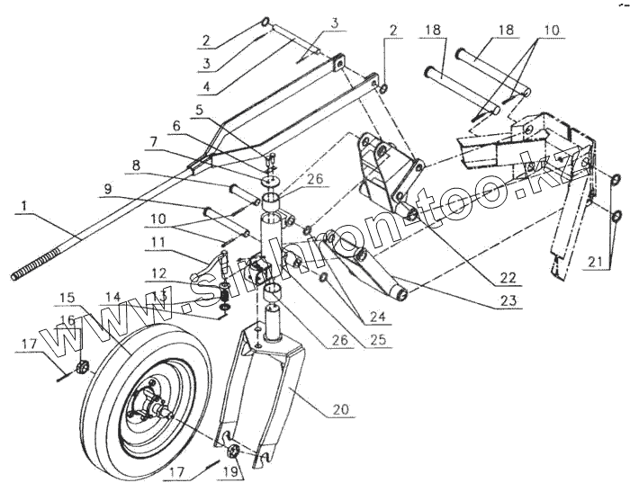 Каталог запасных частей к технике: Красная Звезда СТС-2 (6). Установка колеса Н13003000А на раму сеялки