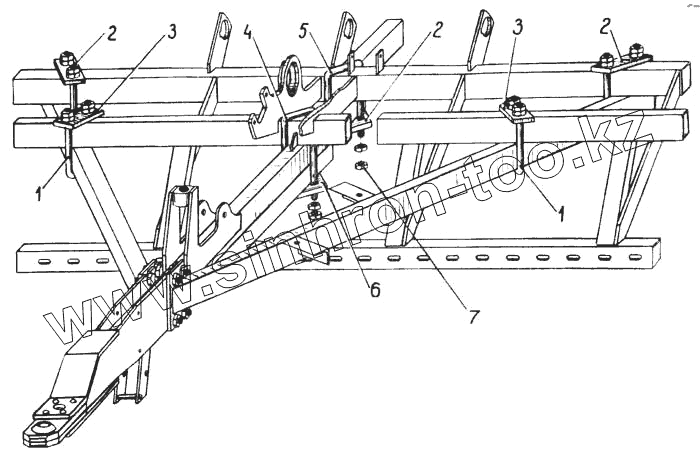 Каталог запасных частей к технике: Красная Звезда СЗ-3,6А. Крепление прицепного устройства к раме сеялки