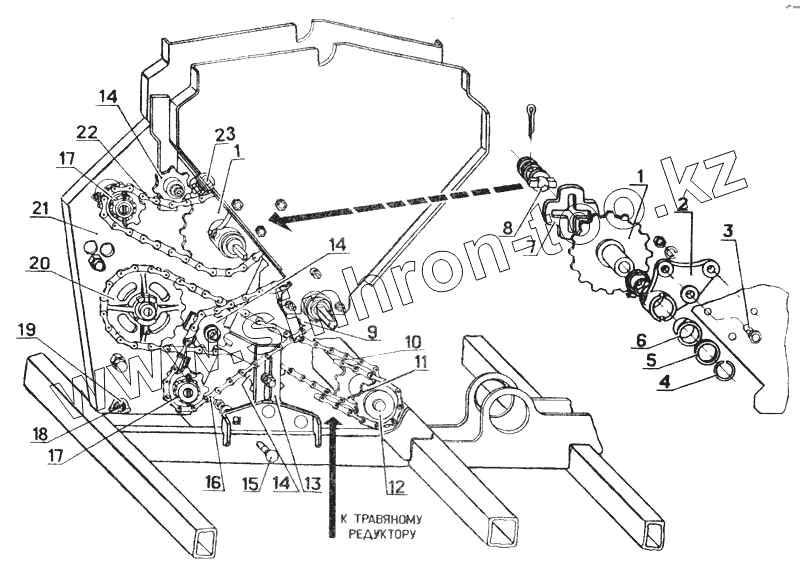 Каталог запасных частей к технике: Красная Звезда СЗТ-3,6А. Механизм передачи на валы зерновых аппаратов