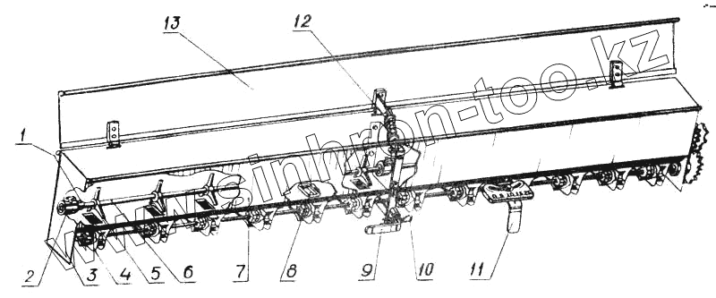 Рама сеялки с установкой валов подъема сошников, механизма передач на вал контрпривода